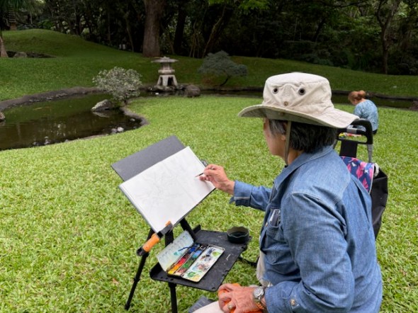 It was a little hard to find but when you do, you couldn’t ask for a better morning to sketch in the serene surroundings of the East West Center Gardens behind Jefferson Hall at the University of Hawai’i.