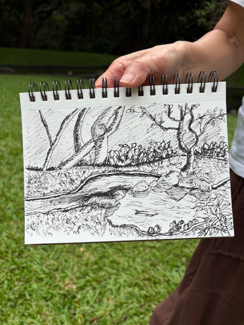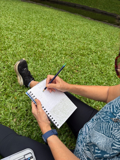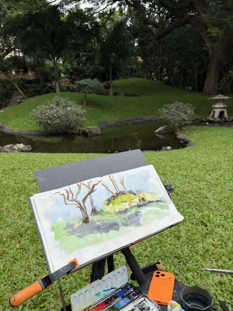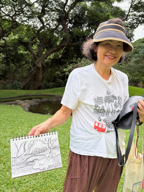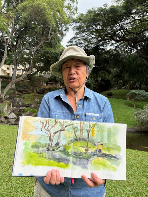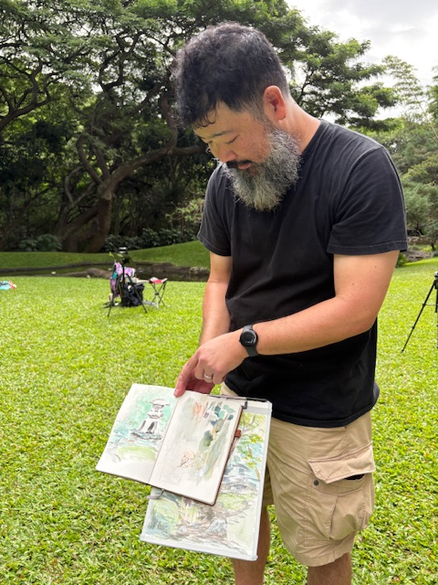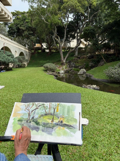 Posted: November 22, 2025 Filed under: USkO 2 CommentsIf this was the first time or the hundredth time sketching in urban Honolulu, we are so glad to share our love of urban sketching with you. Art is amazingly meditative and when it’s at such a calming place like Kunawai Springs Urban Park, how can you not feel peace?