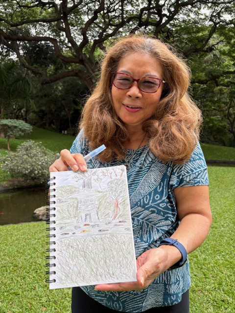Nestled in the heart of bustling Honolulu is a tranquil oasis, Kunawai Springs Urban Park. The park is an artist’s dream with natural greenery and peaceful water features. Perfect for us Urban Sketchers.