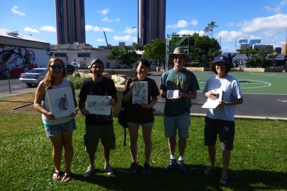 It is wonderful to see that POW! WOW! Hawai‘i is going strong, and we will definitely keep it on the calendar for next year. Muralists were very friendly and open to being sketched. And, we certainly were not the only gawkers in the area! Hope to see familiar and new faces at our next event on the UH Mānoa campus (Saturday, 2/20)!