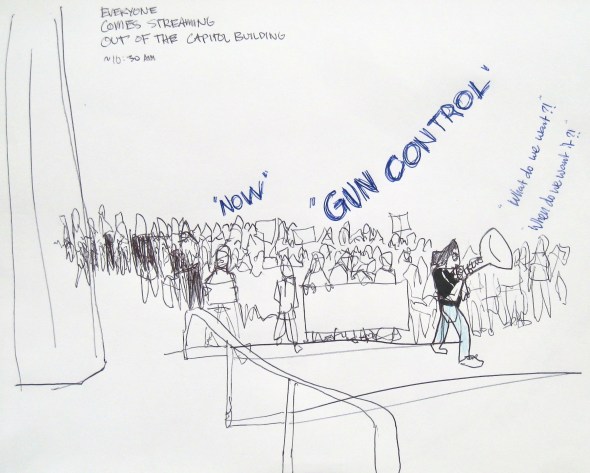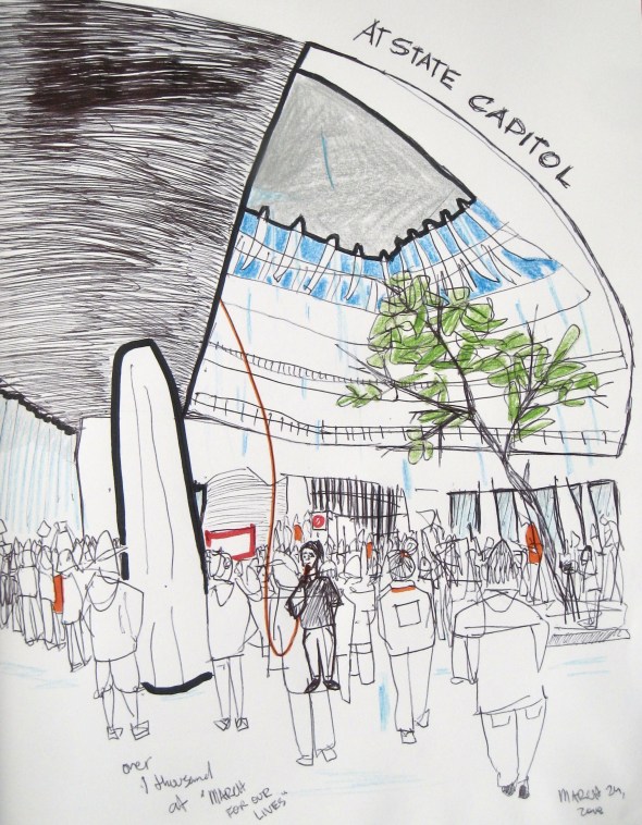 This morning, crowds gathered for Honolulu’s March for Our Lives at the state capitol. I sketched some of the action.