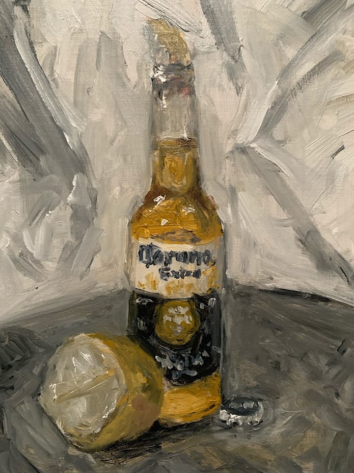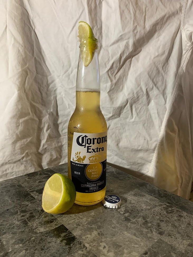 The subject I’ve chosen is once again, the topical Corona. This is my second attempt at sketching Corona, I wasn’t too happy with my first attempt. About a month ago I sketched a can rather than the iconic bottle and the measurements were a bit off. The bottle offers more color variation and the translucency of the glass and beer plays interestingly with light. I should note that I rotated the bottle slightly to make sure I got the logo facing me as I painted.