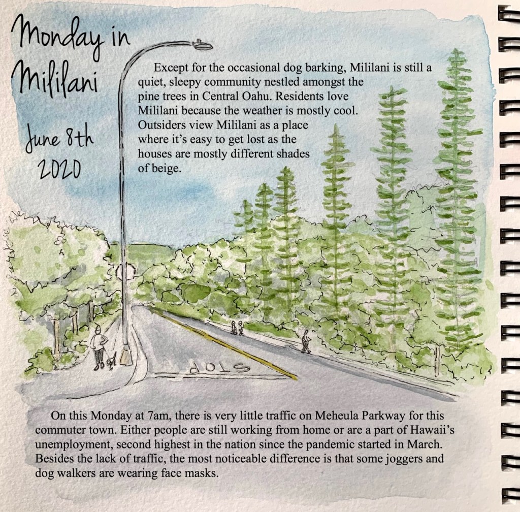 Posted: June 9, 2020 Filed under: USkO | Tags: Meheula Parkway, Mililani, tell a story, urban sketchers 2 CommentsWhether it’s social media, podcasts, books, magazines, or just sitting outside, there is a wealth of inspiration for Urban Sketchers.