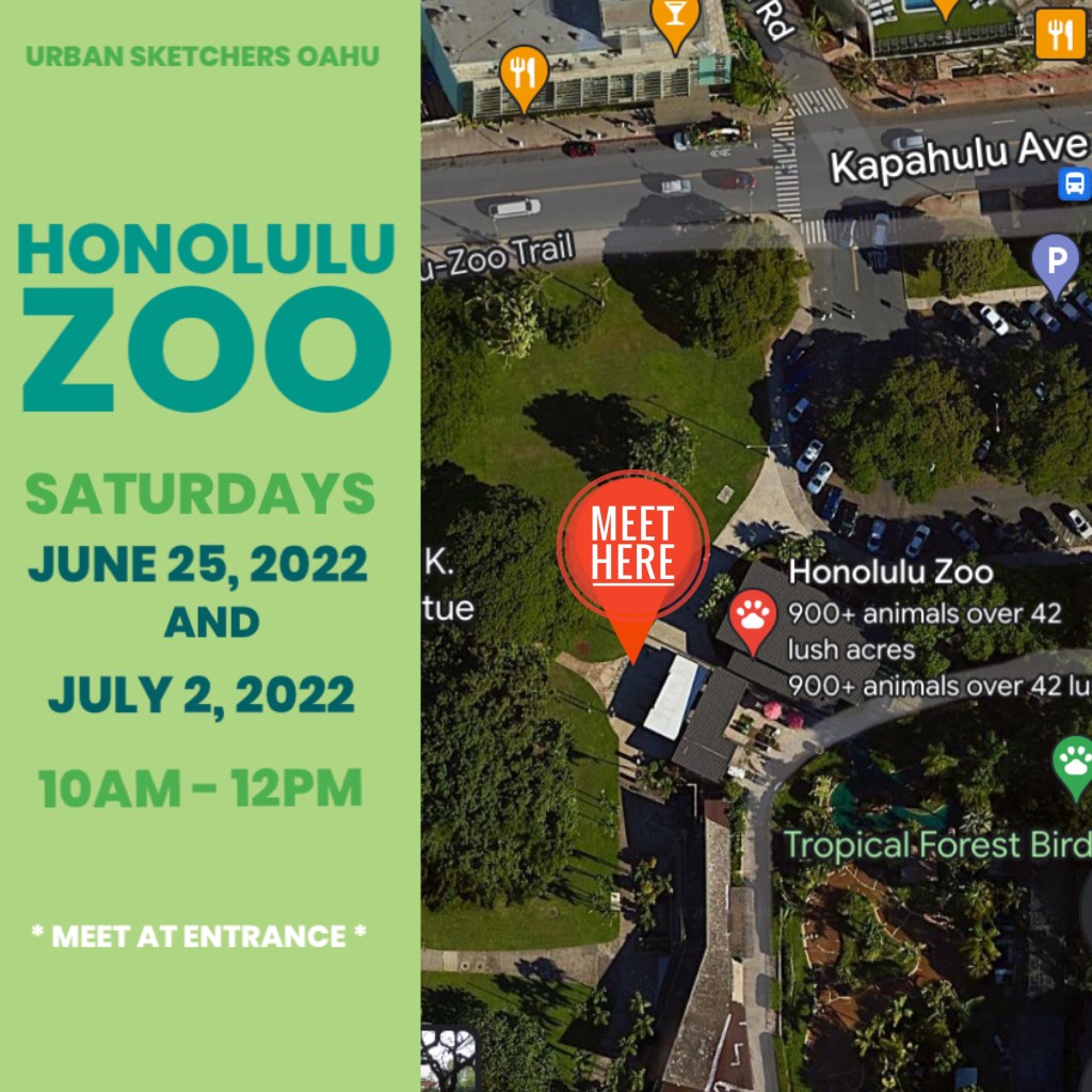 Join us on June 25th and July 2nd at the Honolulu Zoo as we look for fun and interesting animals and/or people to sketch. Feel free to join us on both Saturdays or just one day.