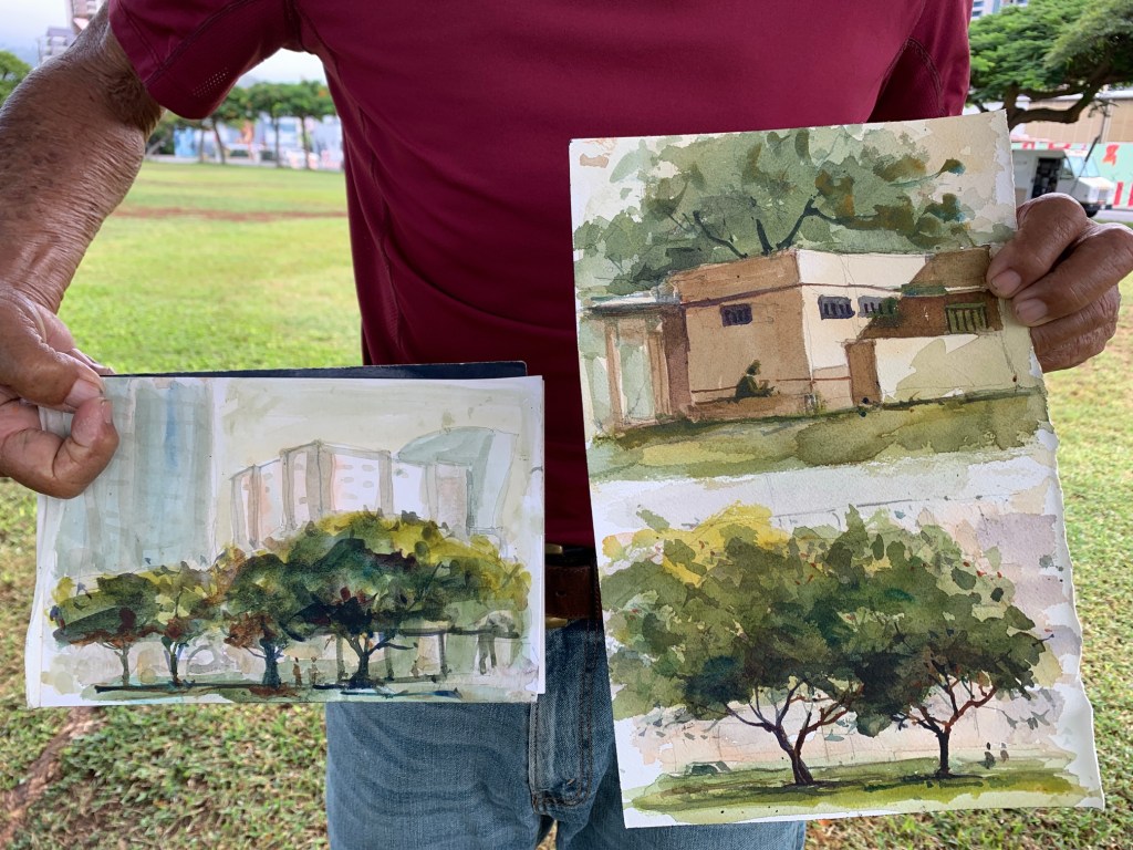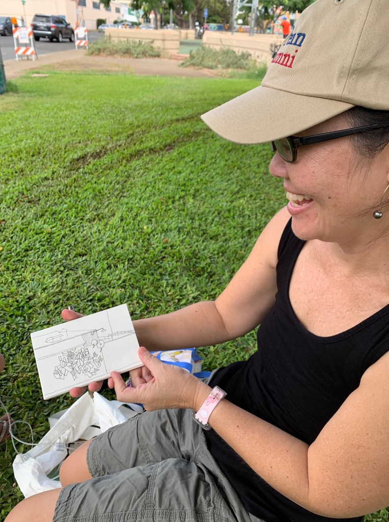 Thanks to Mayumi, representing American Institute of Architects (AIA) Hawaii. While we were sketching, AIA hosted walking tours to the public. I wish I could have tagged along on the tour, but of course, I would rather be sketching.