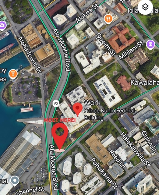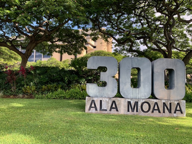 Let’s meet here in front of the 300 sign at the corner of Ala Moana Blvd and Punchbowl.