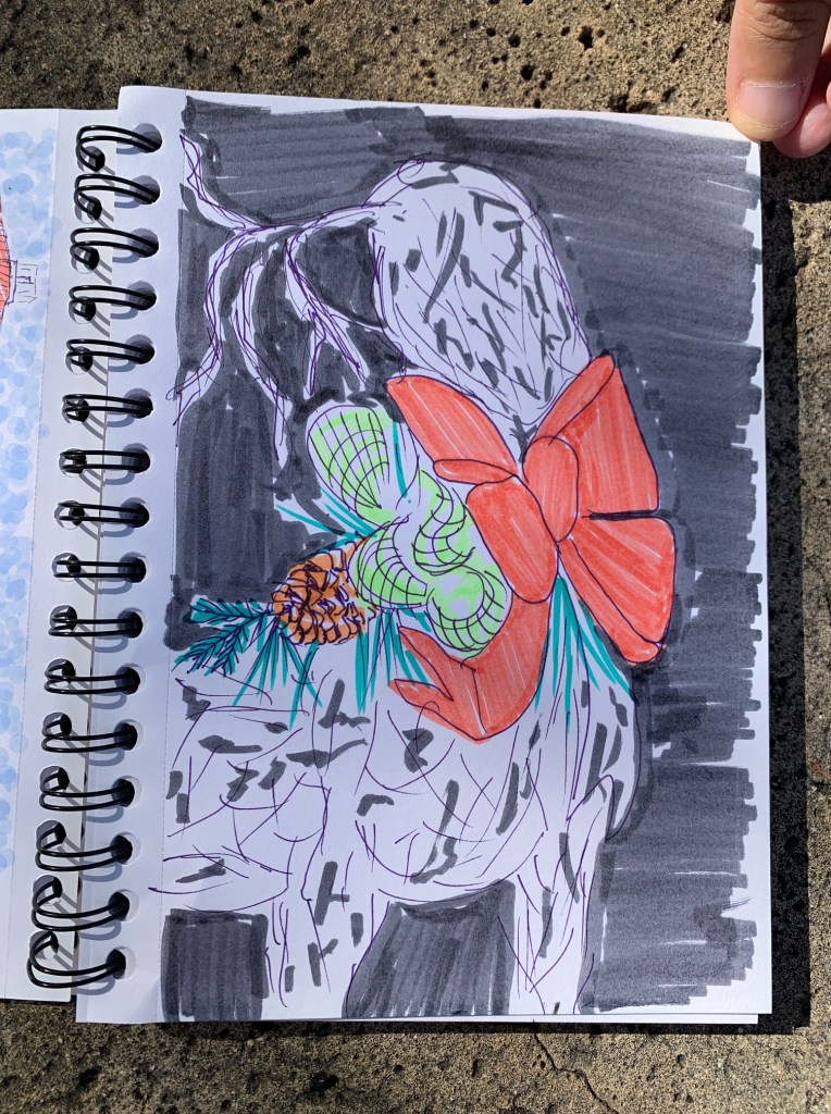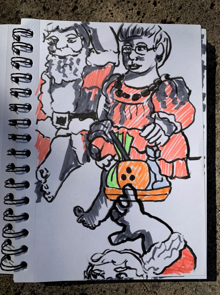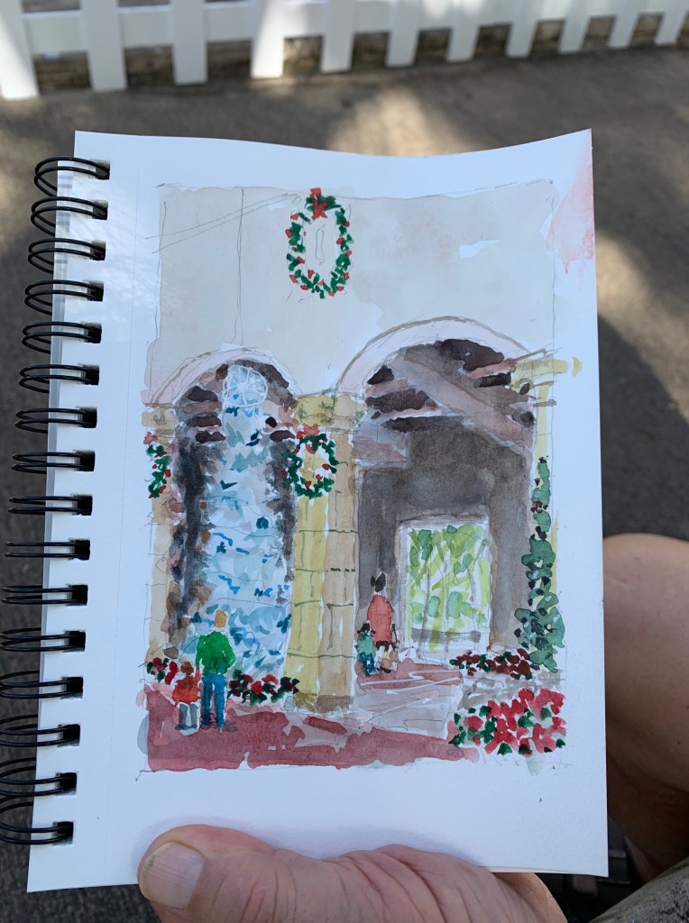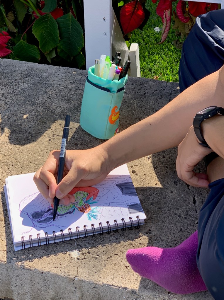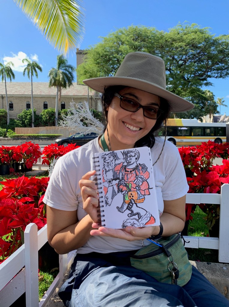 Maybe everyone was busy. Maybe it was traffic. But it was three of us sketching at Honolulu Hale this morning. Thank you to Nia and George who spent part of their morning sketching the merriment at Honolulu Hale.
