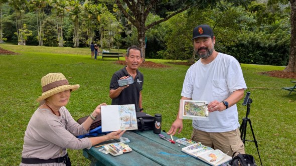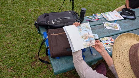 Posted: February 15, 2025 Filed under: USkO Leave a commentWe had a small group at Ho’omaluhia this morning, enjoying some conversation and sketching. It was a fairly clear morning as we sat in the shade at the picnic tables. Sorry, I forgot to take pictures until the end.
