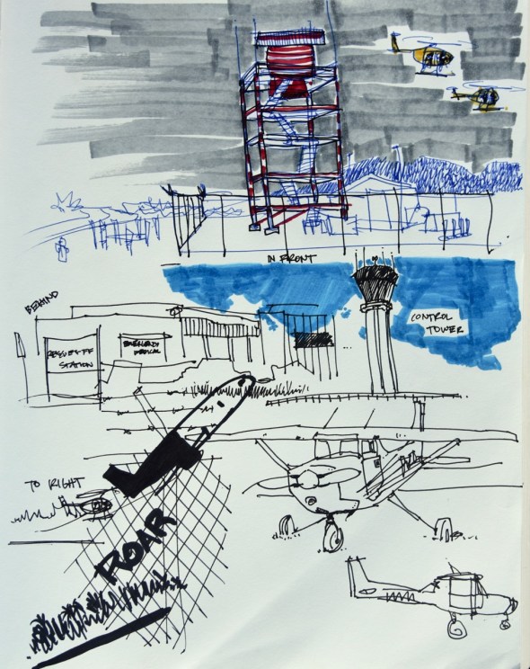 Posted: March 16, 2021 Filed under: USkO | Tags: helicopters, Kahului, Kahului Airport, Maui, planes 2 CommentsI was by Kahului Airport recently and had a little time to get out my sketchbook. I did my best to fill the page with different vignettes. I used plain office pens and a couple of markers. Definitely an exciting spot to sketch (and I did exchange greetings with security), but admittedly when those planes take off I lose focus and just bask in the roar of the jet engines. Town is definitely starting to feel busier though… like tourists are starting to come back.