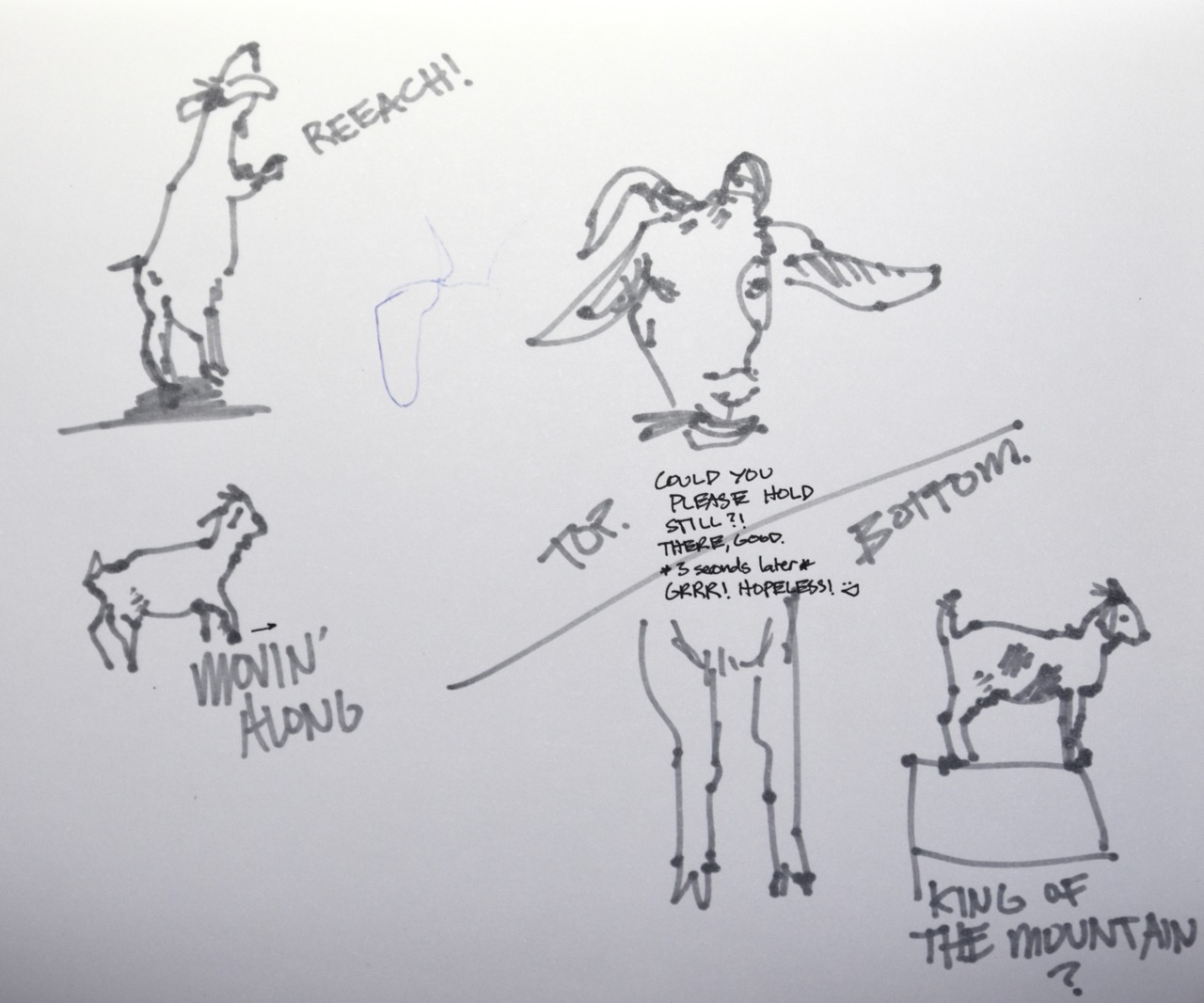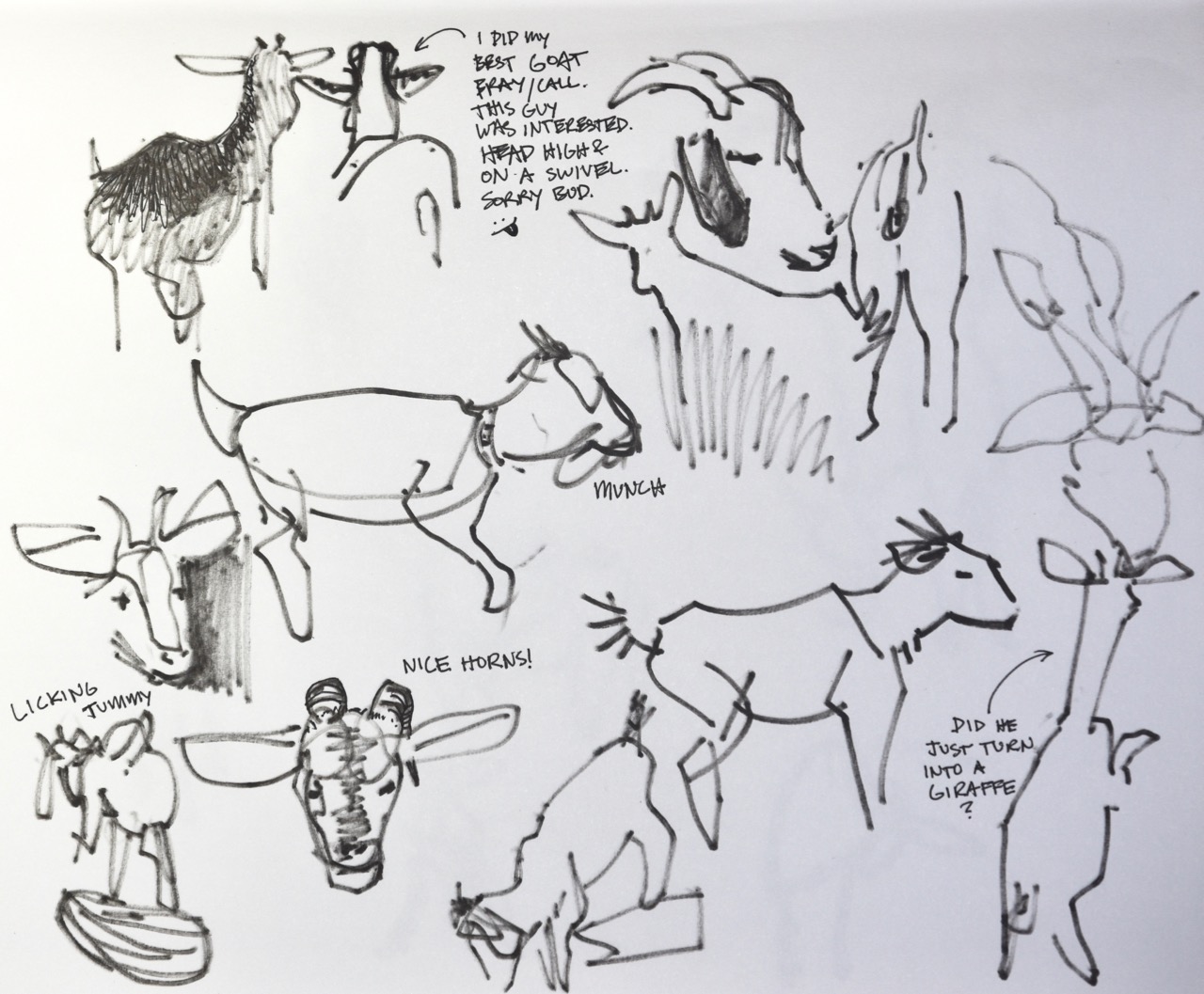 Posted: September 28, 2021 Filed under: USkO | Tags: animals, goats 1 CommentIt’s been a while since I have sketched. Last Tuesday was USkO’s 7th birthday though, so I had to get out for a little doodling to celebrate the occasion today – even if it was a week late. Inspired by the goat sketches on the blog some months ago, I decided to chase down some of my own hooved friends. They must have had a double shot of espresso though. I was teased with three-second poses.