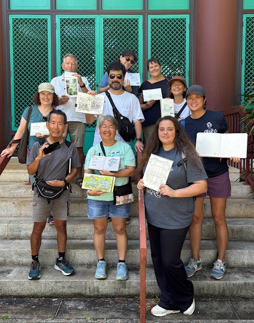 Posted: August 5, 2025 Filed under: USkO | Tags: event announcement, oahu urban sketchers, urban sketchers, usk 1 CommentFour times a year, the Honolulu Museum of Art opens its doors free to kaima’ainas on Community Day. Perfect for us, Urban Sketchers to explore the galleries and beautiful spaces and create art of our own.