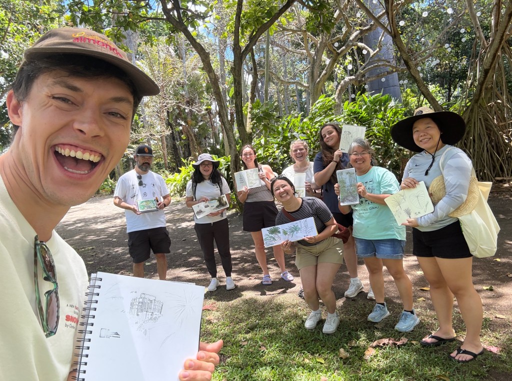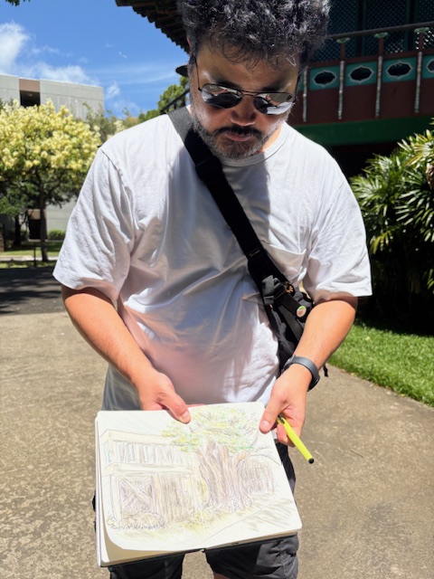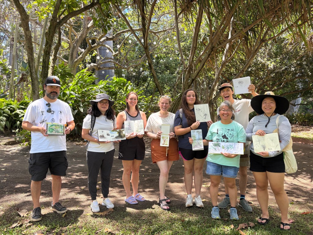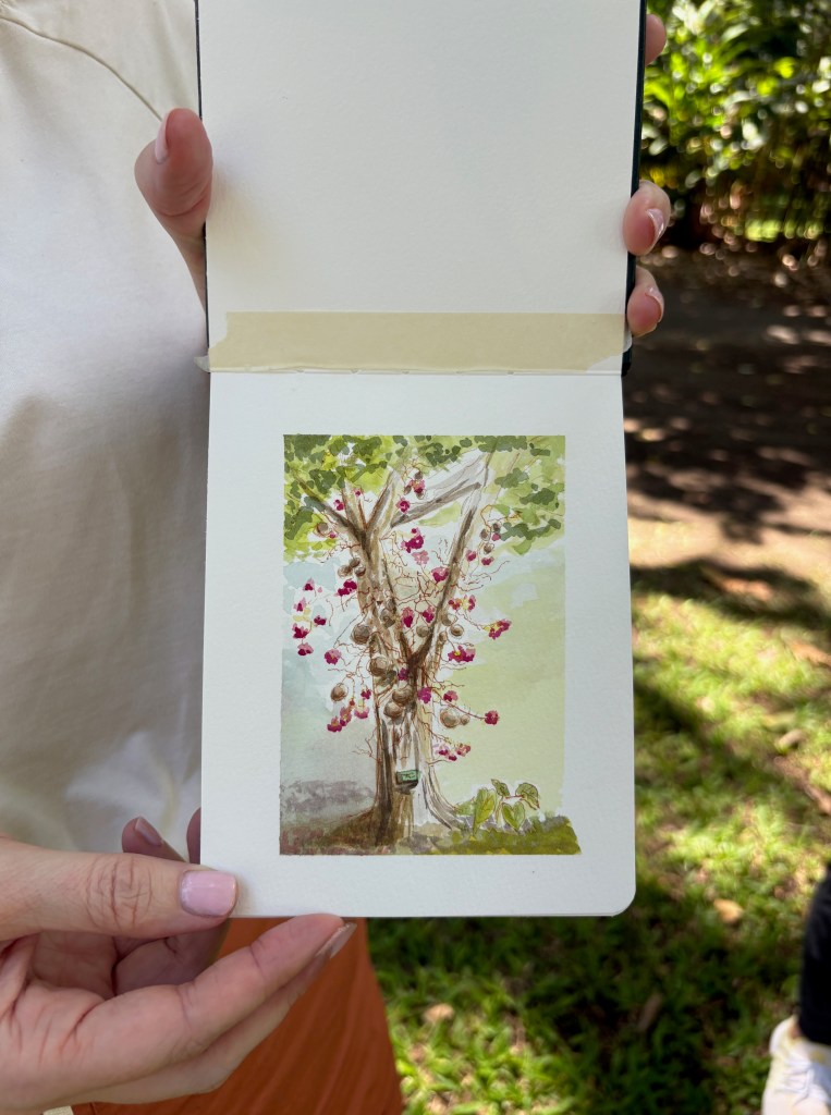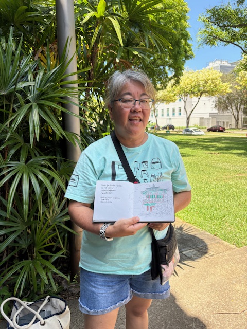 Posted: June 22, 2025 Filed under: USkO 1 CommentUnder the canopy of lush mature trees, Urban Sketchers O’ahu joined Hawai’i Botanical Society at the University of Hawai’i at Mānoa for a morning of learning about campus trees, plants, and pests. A big mahalo to Arby from HBS for a very informative tour about native and non-native plants and trees. Thank you for sharing your knowledge with us so we can appreciate the beauty around us.