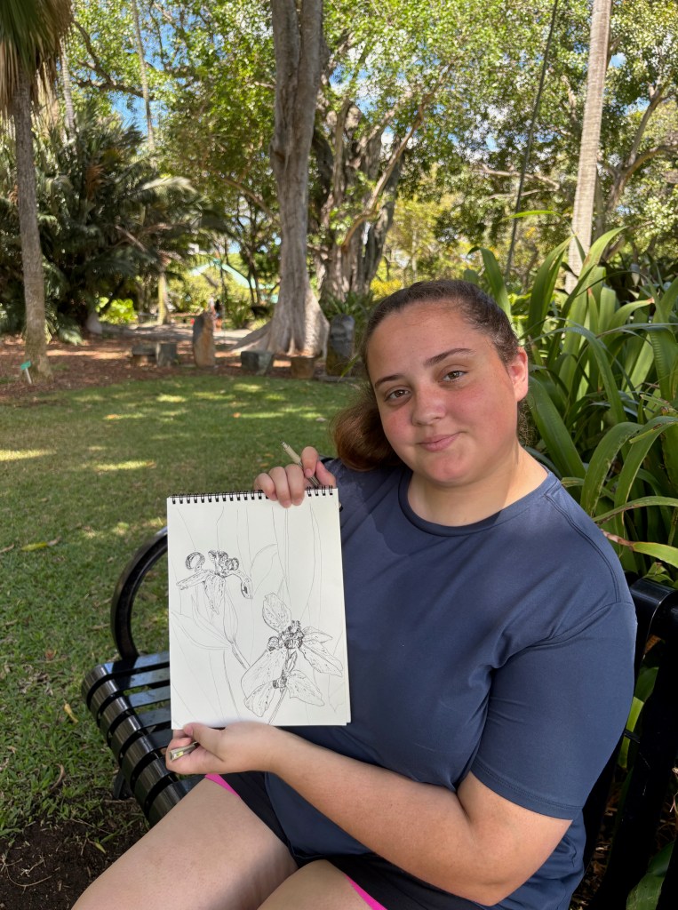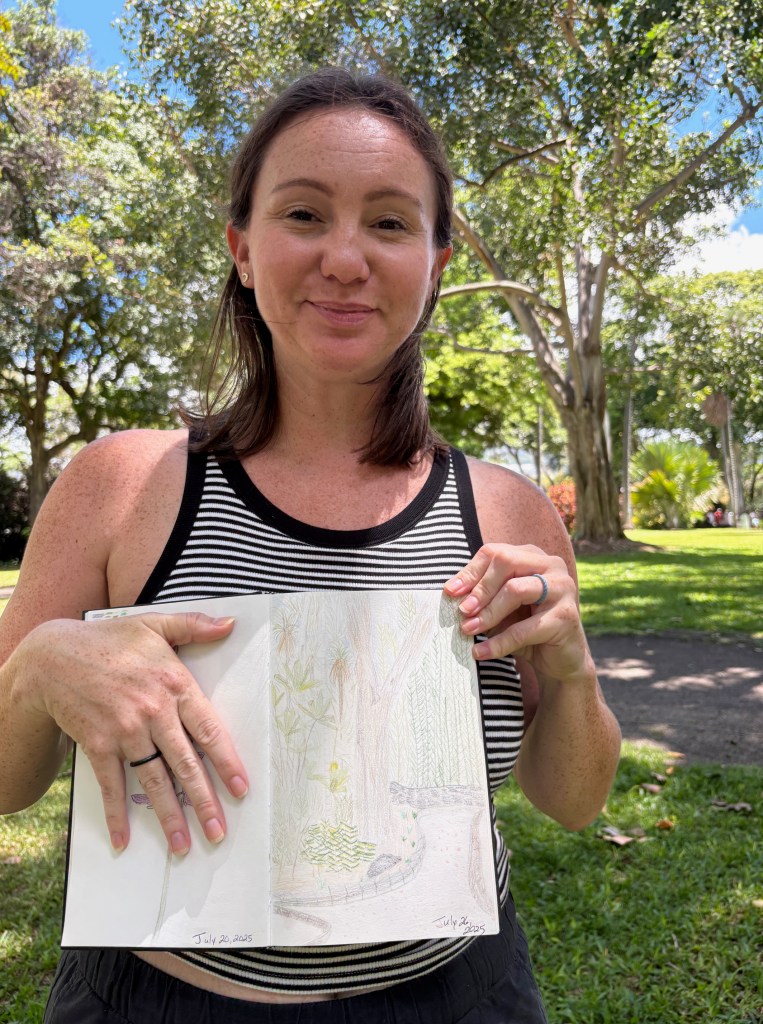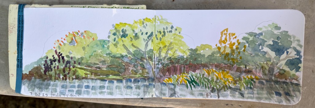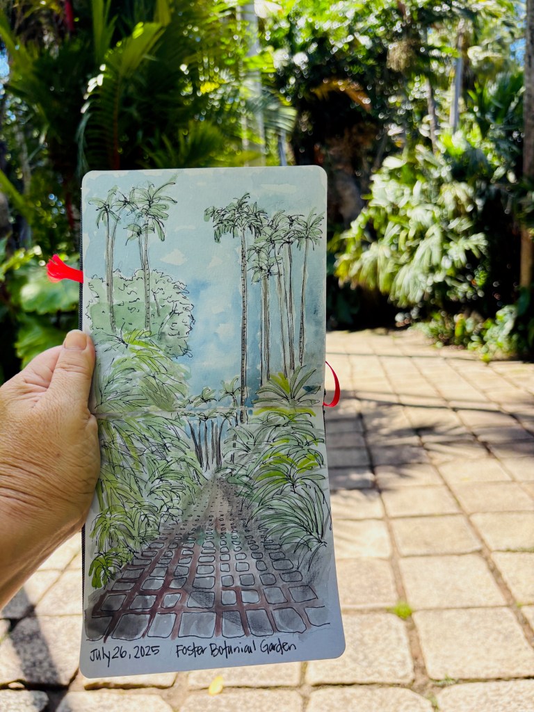 Posted: July 26, 2025 Filed under: USkO Leave a commentSurrounded by nature, fluttery butterflies, soaring birds and your sketchbook. That’s transcendent. Sandwiched between the noisy highway and busy Vineyard Blvd., Foster Botanical Garden offers an serene escape to nature with its towering trees and lush foliage.