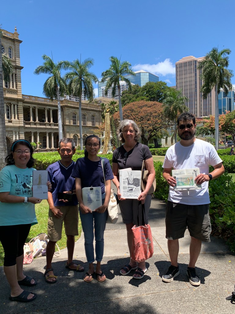 Thank you to AIA Hawaii for choosing this iconic location for our collaborative event celebrating Architecture Month. And thank you everyone who came out to sketch today. It’s always great to see familiar faces and make new friends too. Shout out to Shamir (left of group) who is visiting us from Boston!