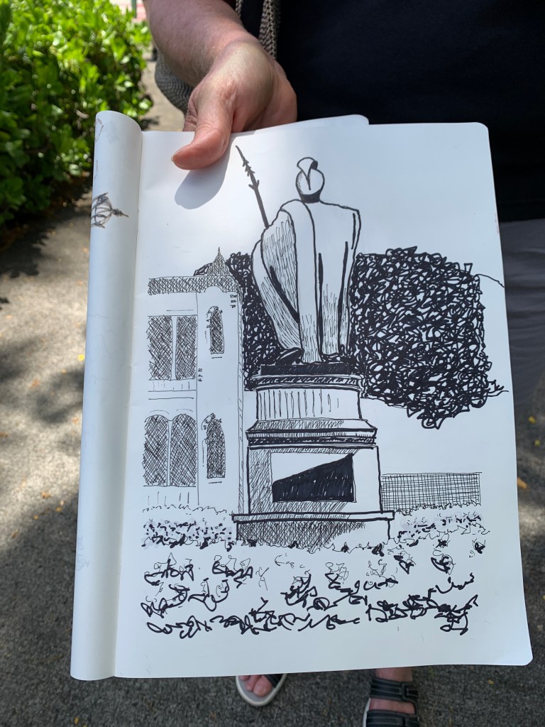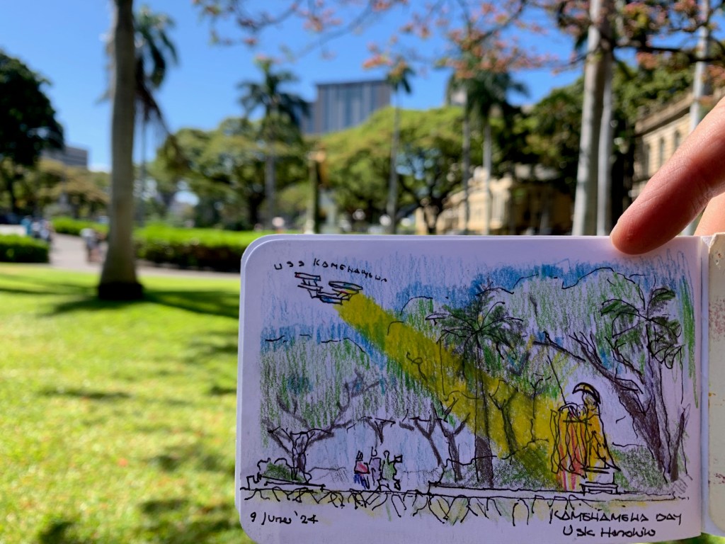 Posted: June 9, 2024 Filed under: USkO 1 CommentThank you those who came out today to sketch this historic King Kamehameha statue on King Street. Adorned with lei celebrating King Kamehameha Day, we got close up and in person to this grand annual tradition.