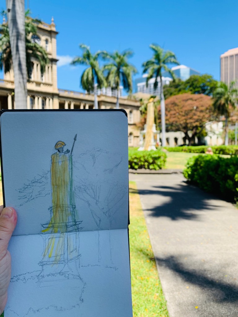 We will be sketching at the King Kamehameha Statue in downtown Honolulu. The statue will be adorn with lei. Read here for more information on the lei draping ceremony.