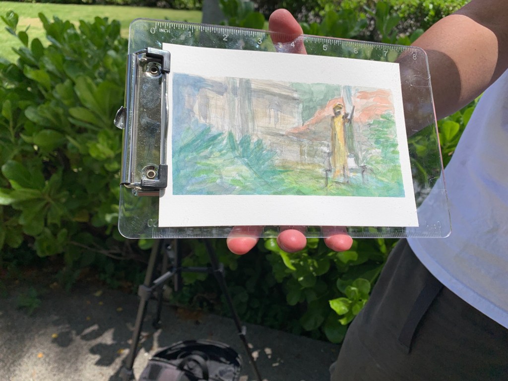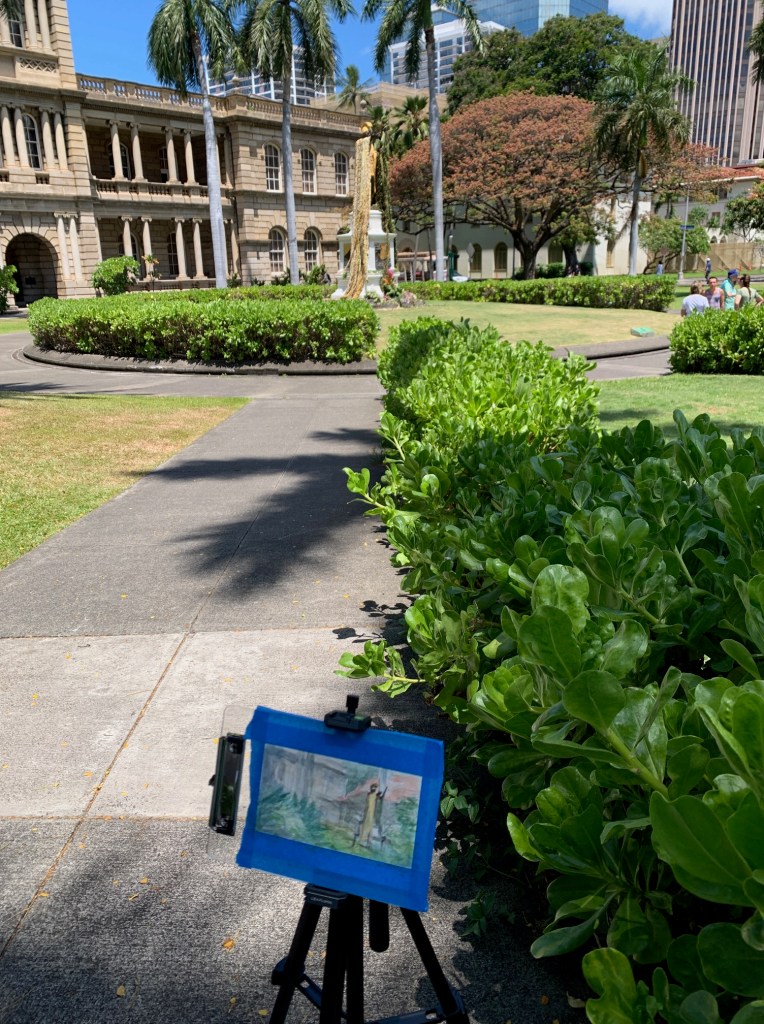 There was live music across the street at I’olani Palace to entertain us while we were sketching but I think I can speak for all of us, we were grateful for the tradewinds to return after a very humid and muggy week.