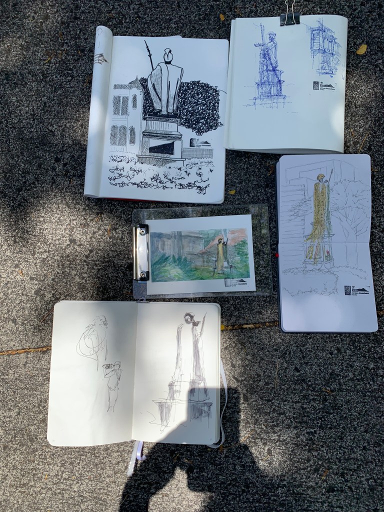- Expecting big crowds, we will not meet at 10am, like we usually do. Instead, please come early and start sketching on your own from 10 to 11:30. Then meet at the statue at 11:30 to share our sketches and take our traditional group photo.