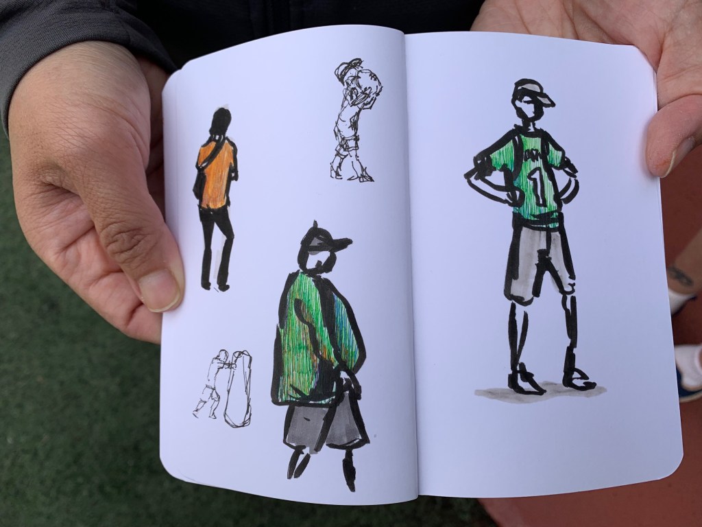 Just a small group of sketchers today. Sorry Ivan, we missed you. Those of us that did get to go inside, were treated to view a museum of great memorabilia including concert posters, football jerseys, helmets, and more. We got to walk inside the locker rooms that the players were and be on the field of many touchdowns and famous live performances including Michael Jackson, Whitney Houston, and the Eagles.