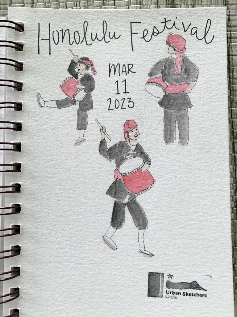 Posted: March 11, 2023 Filed under: USkO 2 CommentsJust a small group sketching at the Honolulu Festival but what a fun morning of sketching crowds, taiko performers, the Convention Center, sake, and flowers.