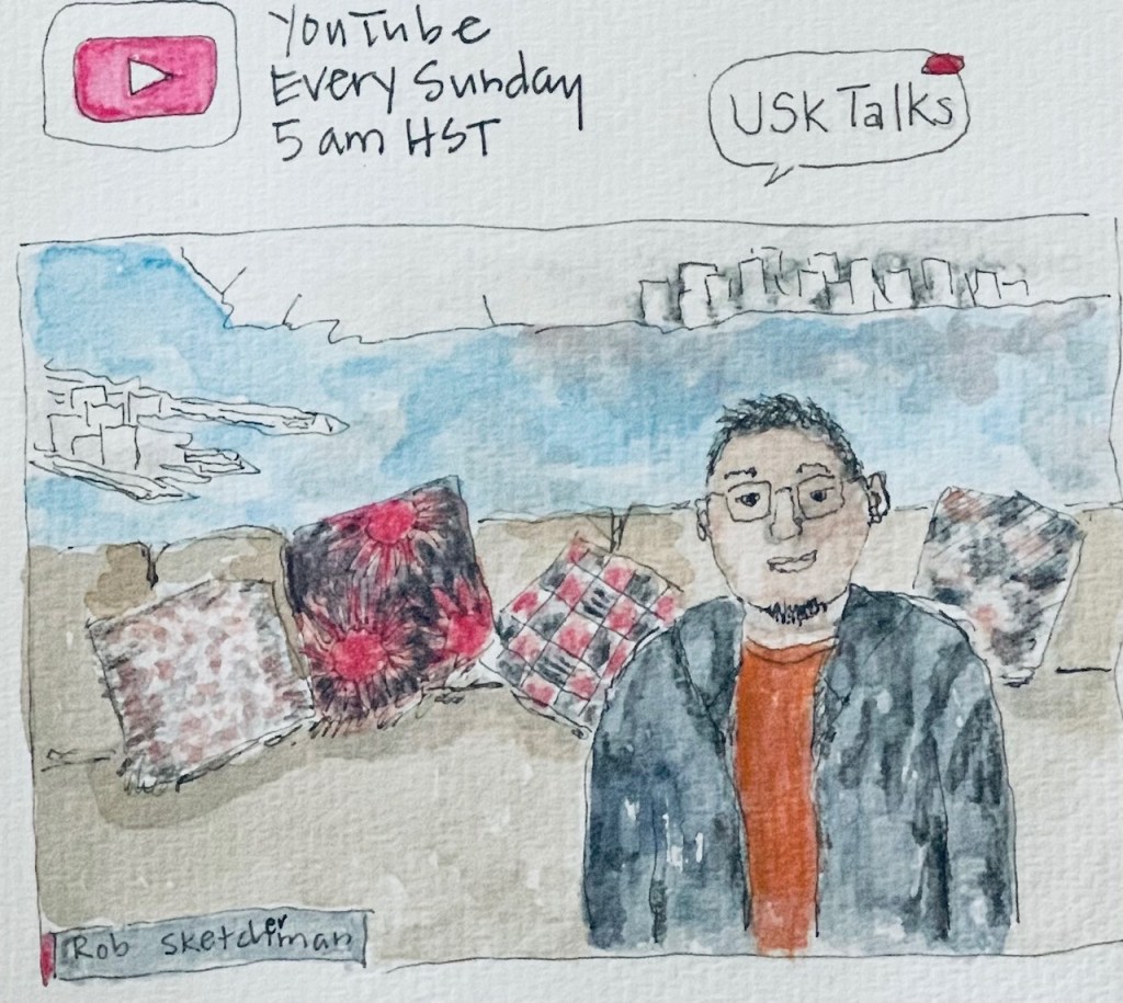 Last year, during the first lockdown, Urban Sketchers launched USkTalks on Instagram. It was a wonderful way to connect to other Urban Sketchers around the world. On January 3rd, they launched their second season. This time, it’s on YouTube. It’s a live broadcast at 5 a.m. HST every Sunday.