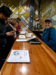 As we walked across the airfield, we saw forklifts loading Si2 parts and supplies onto an Ilyushin cargo plane. Entering the hangar, we got a firsthand impression of the solar plane’s size and unusual proportions. At a wingspan of 72 m (greater than a Boeing 747), the plane just barely fits into the hangar. The plane’s solar panels were covered in reflective foil, and the propellers were dismounted revealing the battery compartments. We were able to see the plane from all angles – even from a balcony above. Although it was a hot day, we greatly enjoyed our visit.
