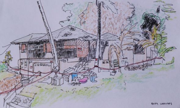 Posted: April 10, 2015 Filed under: USkO | Tags: bicycle, crayon, pen, watercolor Leave a commentA few weeks ago I noticed ominous crunching sounds while cycling and brought my bike to McCully Bicycle to have the bottom bracket replaced. It was interesting to see the axle dismantled, all the specialized tools that were used, and what caused the crunching sounds. I had a good experience and thought I would return to sketch the shop.