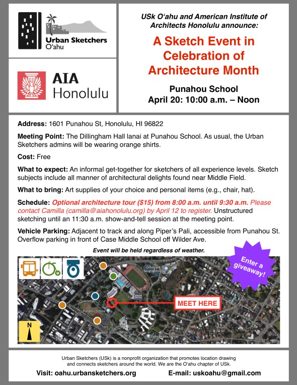 Posted: March 31, 2019 Filed under: USkO | Tags: event announcement Leave a commentReminder: Please contact Camilla (camilla@aiahonolulu.org) before April 12 to register for the optional architecture tour!