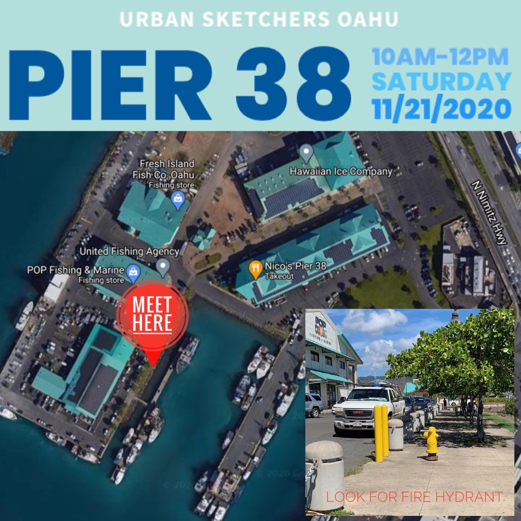 Posted: November 16, 2020 Filed under: USkO | Tags: Honolulu, Honolulu Harbor, oahu urban sketchers, pier 38, urban sketchers, usk, USkO Leave a commentWe are so excited to see your happy faces as we sketch together this Saturday, November 21st at Pier 38. Please read previous post here for location.