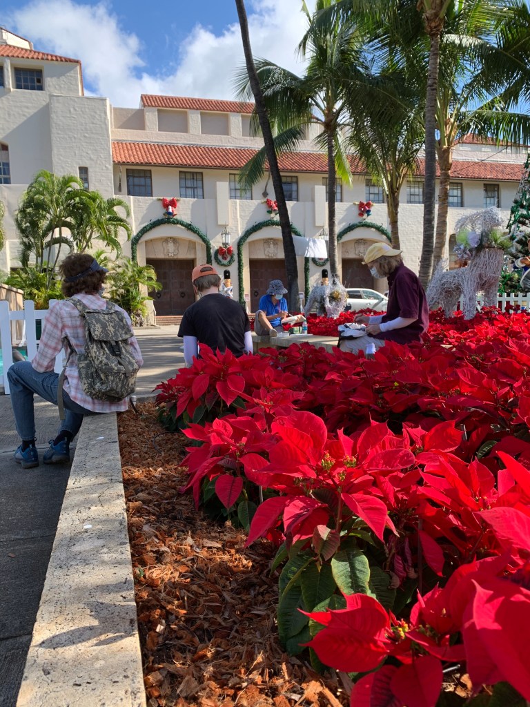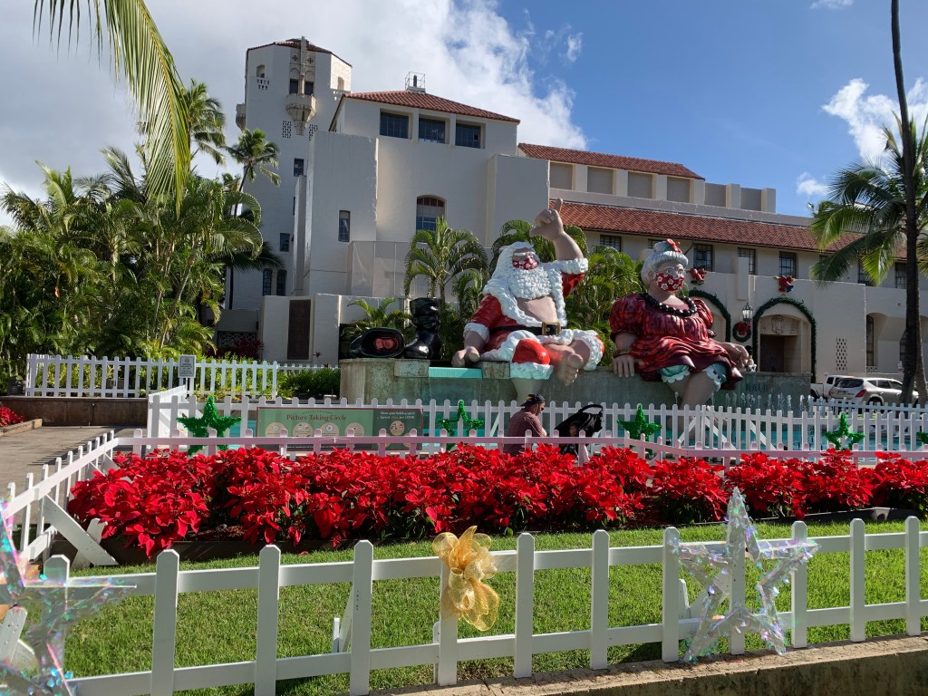 Thankfully the crowds were small (mostly just us and the security guard). And Shaka Santa and Mrs. Claus were watching over us beaming in the Hawaiian sun.