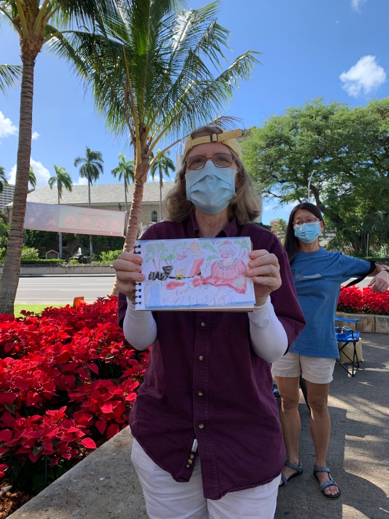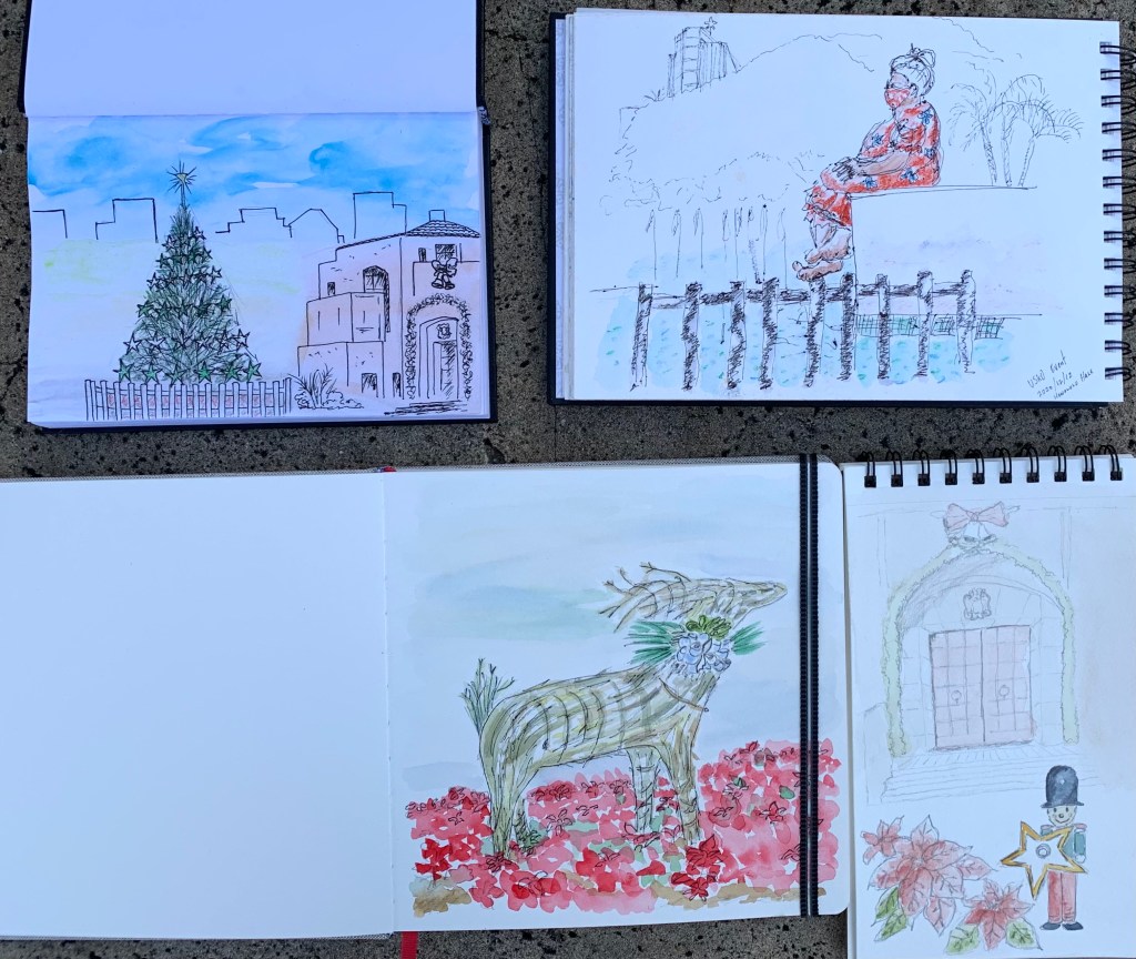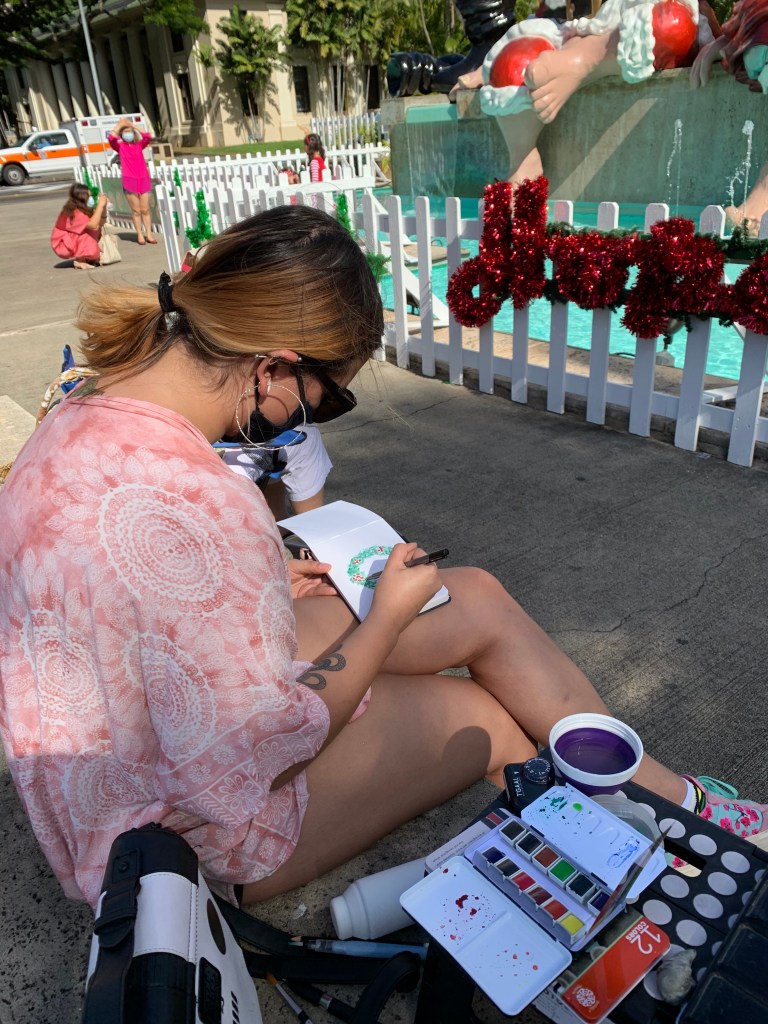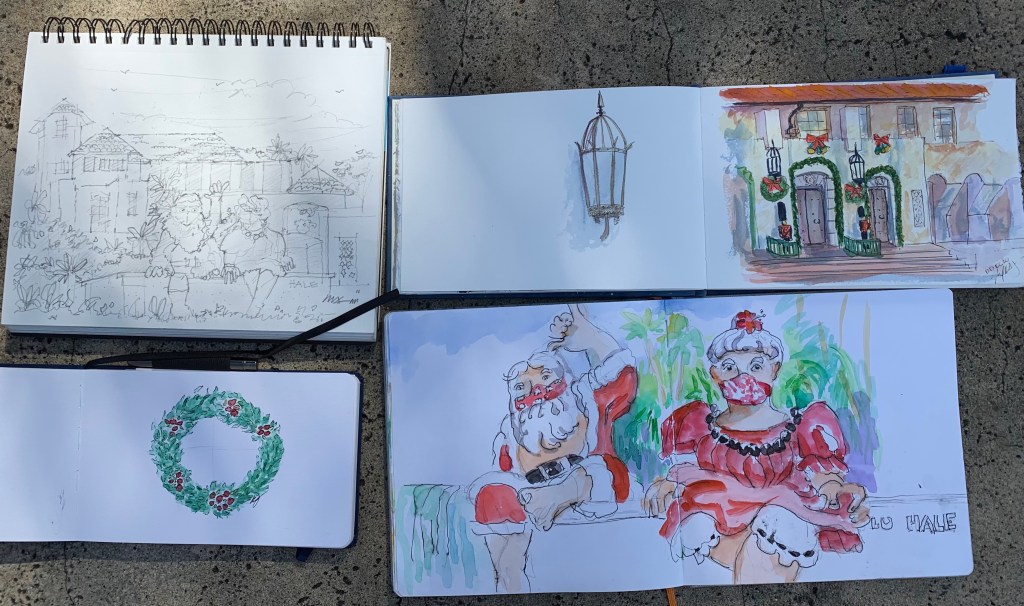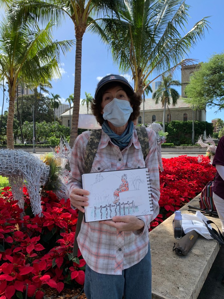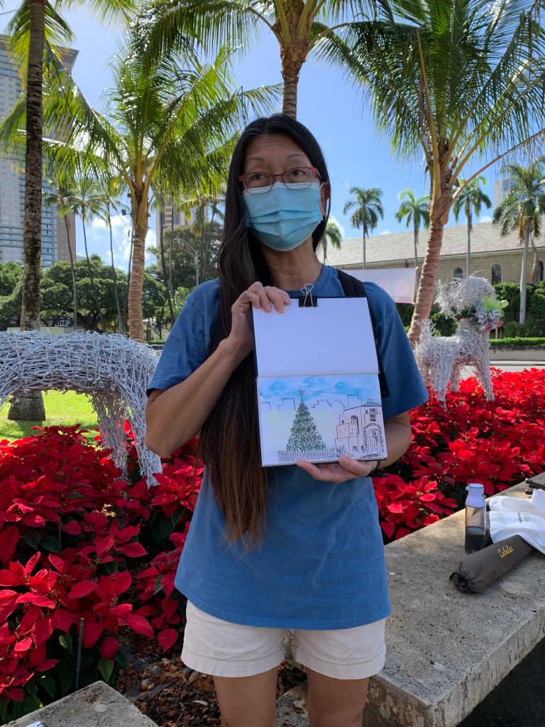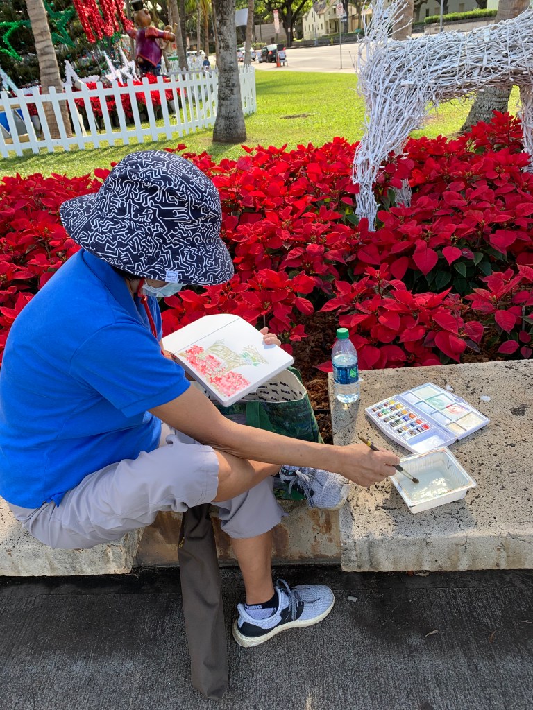 There were certainly less decorations on the lawn of Honolulu Hale this COVID holidays but nothing could stop our Urban Sketching spirit!