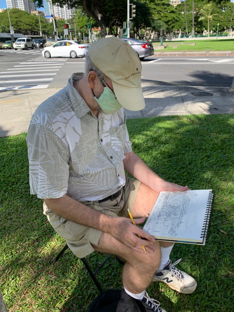 Jolly time sketching at Honolulu Hale