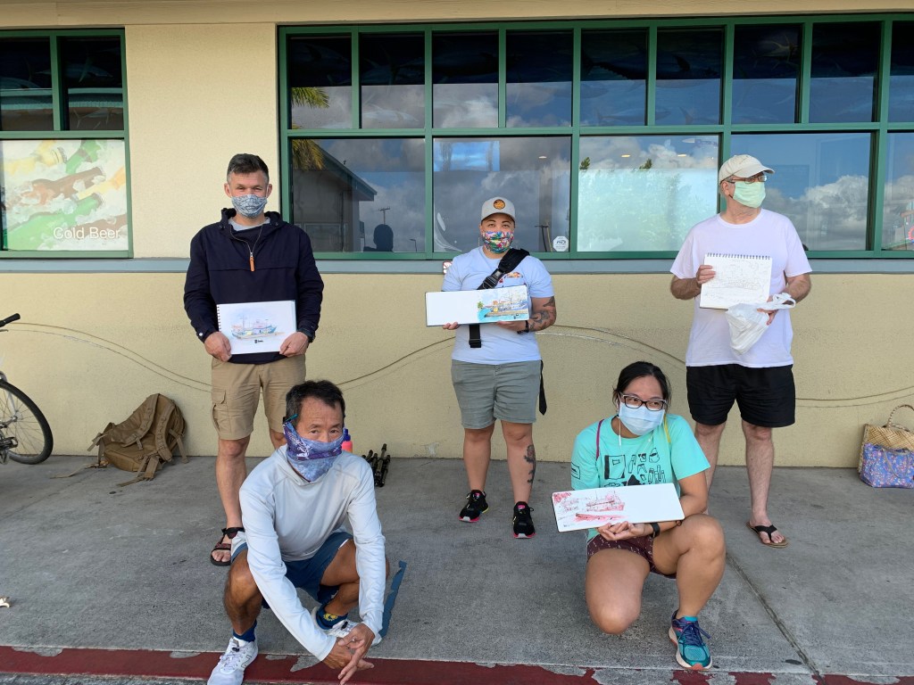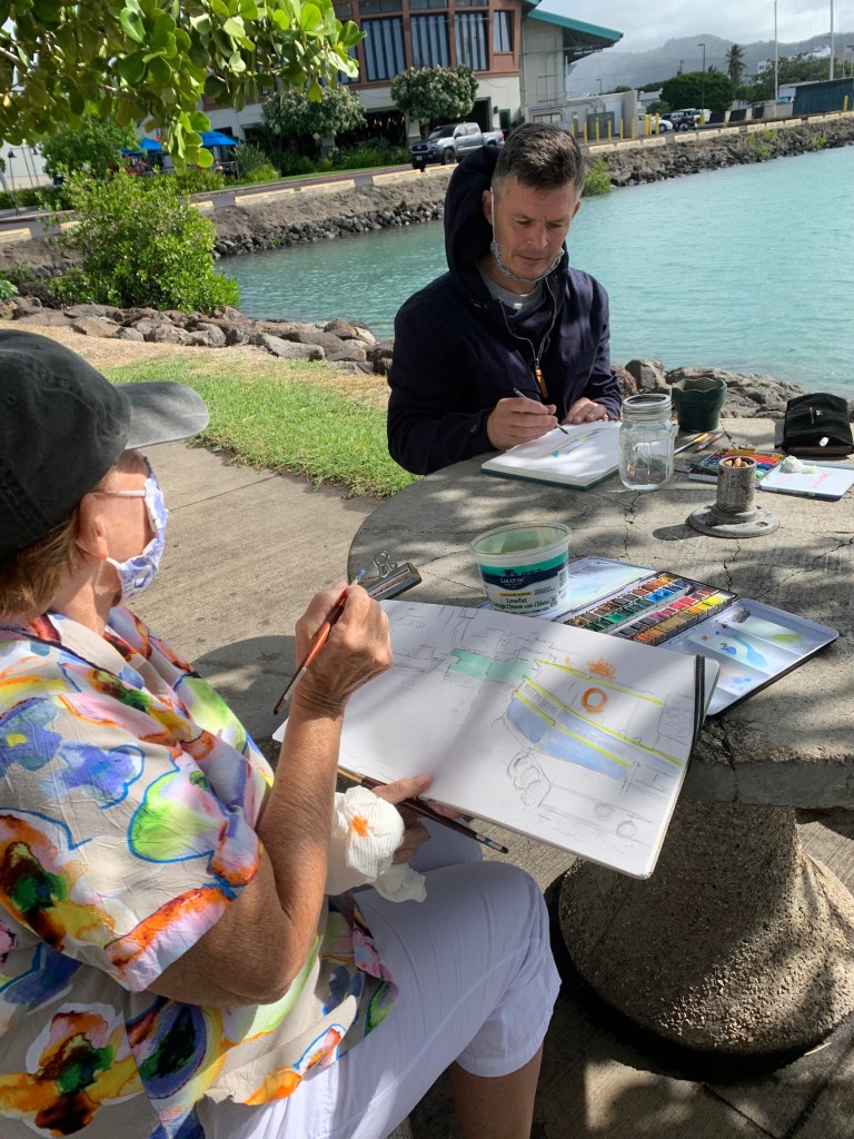 To RSVP, email uskoahu@gmail.com by Friday, November 20th with your name and phone number. It looks like there will be 7 of us so far, so we will break up into 2 groups to be compliant with Oahu’s Tier 2 guidelines. You can also review Urban Sketchers guidelines here.