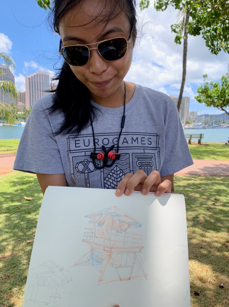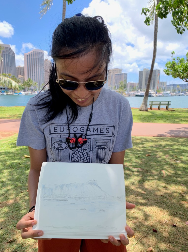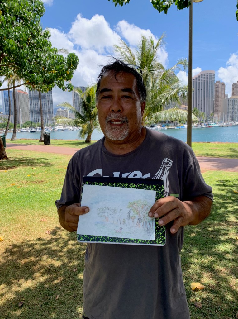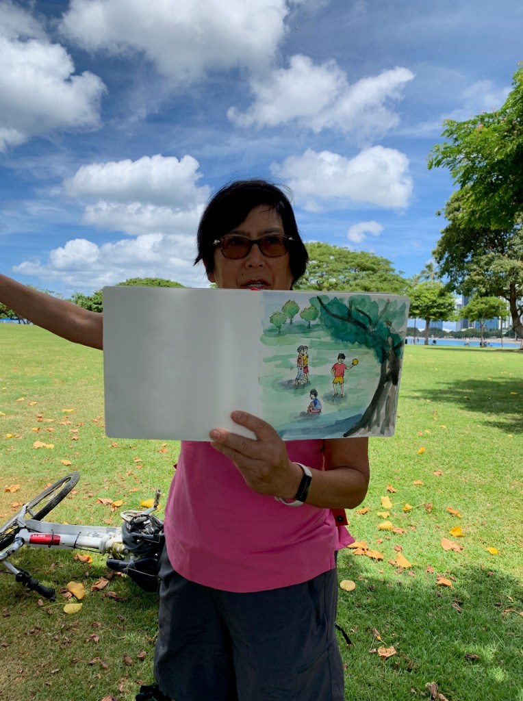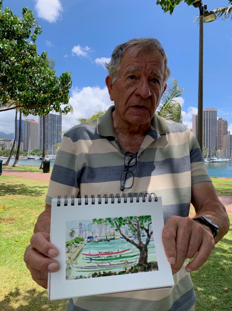 As Urban Sketchers, our mission is to raise the artistic, storytelling of our city by sketching on location, promoting visible art and connecting people. I think we do a pretty good job of capturing a glimpse of Honolulu to share with the world.