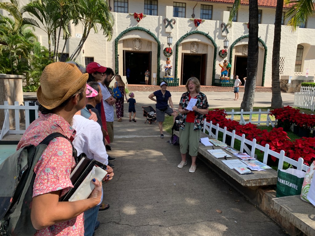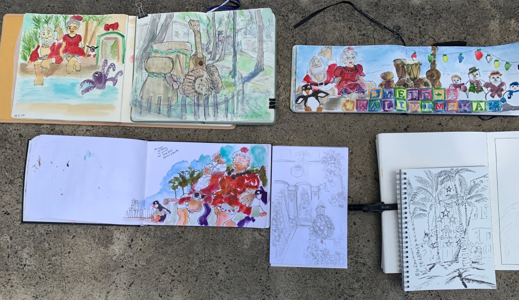 Thank you to all the amazing sketchers who attended this morning’s sketching event at Honolulu Hale. It’s an annual tradition to sketch Shaka Santa and Tutu Mele or the festive grounds in every December.
