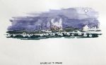 Posted: April 23, 2016 Filed under: USkO | Tags: Si2, solar, Solar Impulse 2, solar plane Leave a commentHarald and I sketched Solar Impulse 2 (Si2) at its departure last Thursday morning. Arriving at 4:00 a.m., we witnessed final preparations, as well as camera crews getting a pre-launch interview with pilot Bertrand Piccard. Shortly after, the plane was rolled out of the hangar and onto the airfield. Incredibly, only a handful of people are needed to push the plane. Soon all we could see in the distance were the flashing lights of the support vehicles and the dark silhouette of the plane, as the team waited for the breeze to die down.