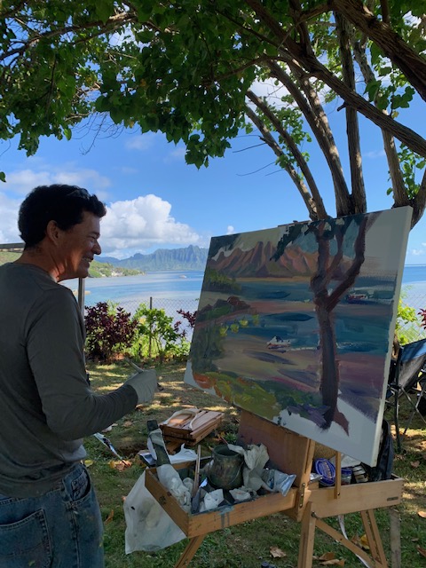 Named as one of the few Plein Air Artists in Hawaii, Mark has been painted for nearly 40 years. He teaches Plein Air at University of Hawaii and is featured in Hawaii Art Galleries across the state. You may have seen his paintings at the Hilton Hawaiian Village or his 60×300’ mural at South Shore Marketplace. He is an accomplished award-winning artist and art instructor. To learn more about Mark, visit his website.