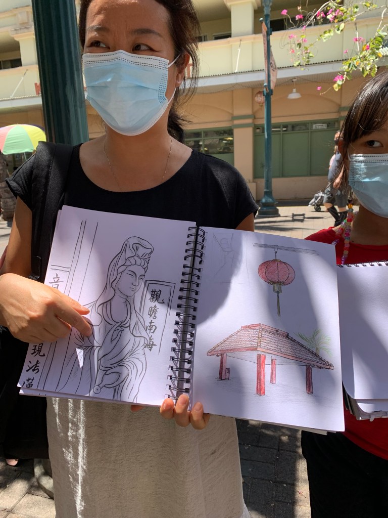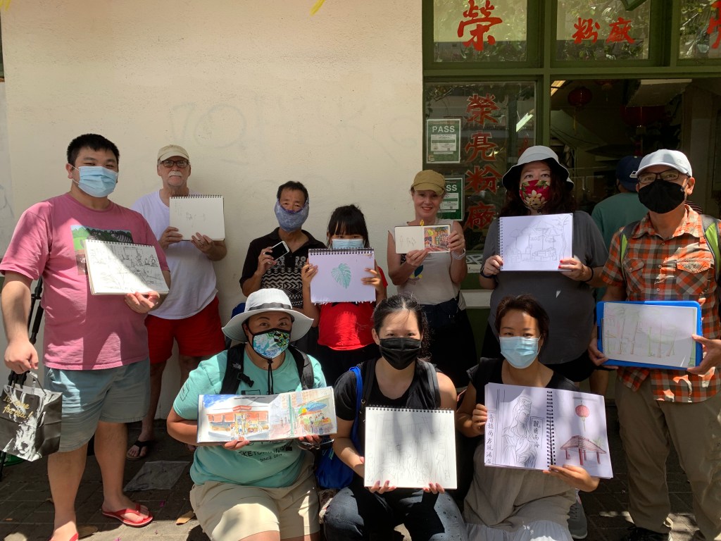 Posted: June 19, 2021 Filed under: USkO | Tags: Chinatown, urban sketchers, usk, USkO Leave a commentIf you think art is an isolated hobby, try painting and sketching in the heart of Chinatown. Bustling with street vendors, shoppers, and colorful people, there is not a minute of sketching without someone peering over your shoulder. Creating art in public does invite the curious. Although it may be uncomfortable at times, it is our mission as Urban Sketchers to raise awareness about art in our community.