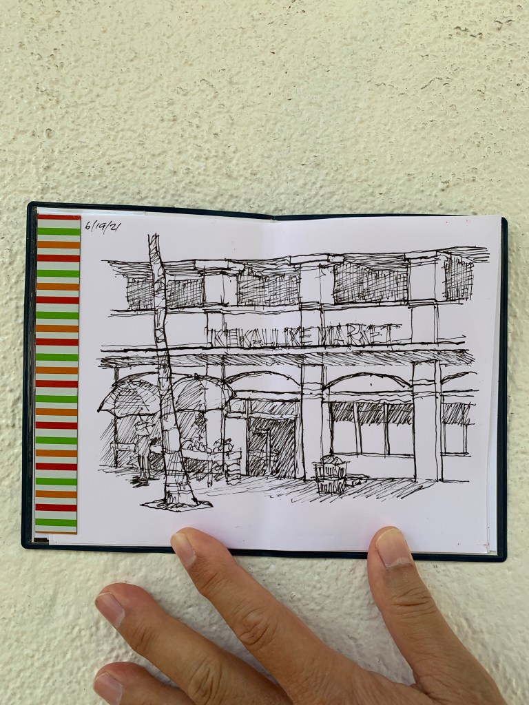 Posted: June 14, 2021 Filed under: USkO | Tags: event announcement, oahu urban sketchers, urban sketchers, usk, USkO Leave a commentI have sad news. Mark Brown will be undergoing surgery this week and will not be able to join us this Saturday at Kekaulike Market in Chinatown. His class will still meet so we are still invited to join them. Mark’s assistant, Dennis Daniel who is incredibly talented will teach the class while Mark is recovering.