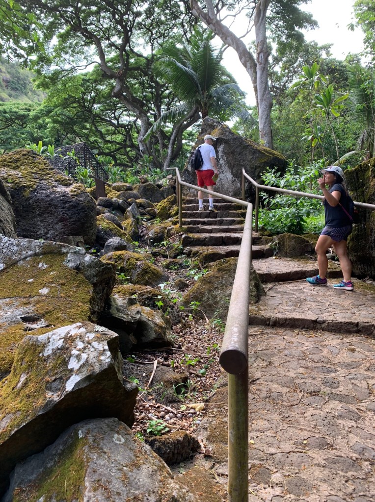 It was Bill’s first time visiting Waimea Valley. It was too crowded for his liking when we finally arrived at the waterfall. But the walk there was full of foliage and beauty even in the rain.