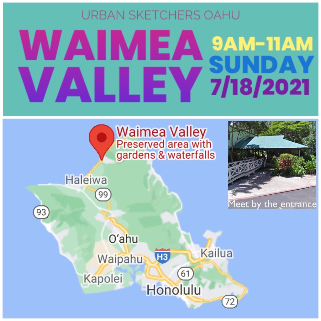 This Sunday (NOT Saturday), we are meeting at the entrance of Waimea Valley for a fun day of nature sketching. We are meeting on Sunday to take advantage of their LĀ ‘OHANA DAY, 50% off admission fees for kama’aina and military families. That’s a bargain $5 admission price! Also, please note we are meeting at 9am when the park opens for a better chance of ample free parking.