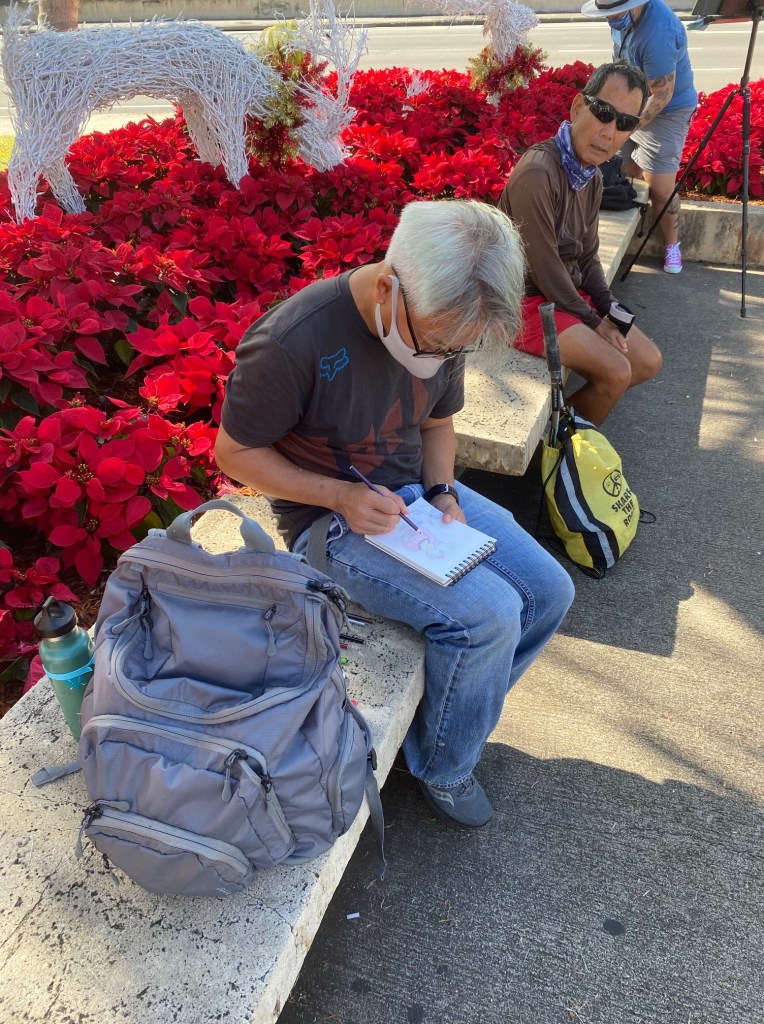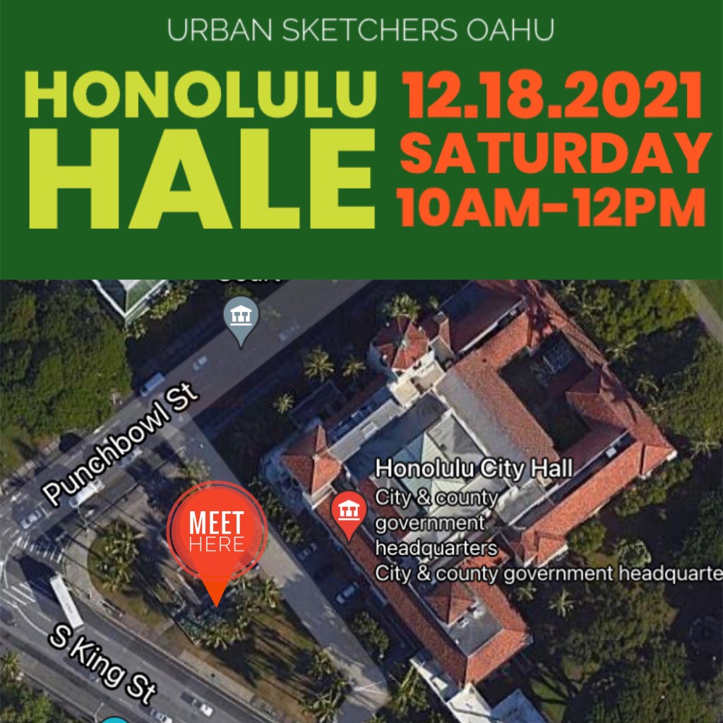 Our next meet up will be Saturday, December 14, 10am to noon at Honolulu Hale. It’s our annual holiday, end-of-the-year place to sketch. Until next time, keep sketching!