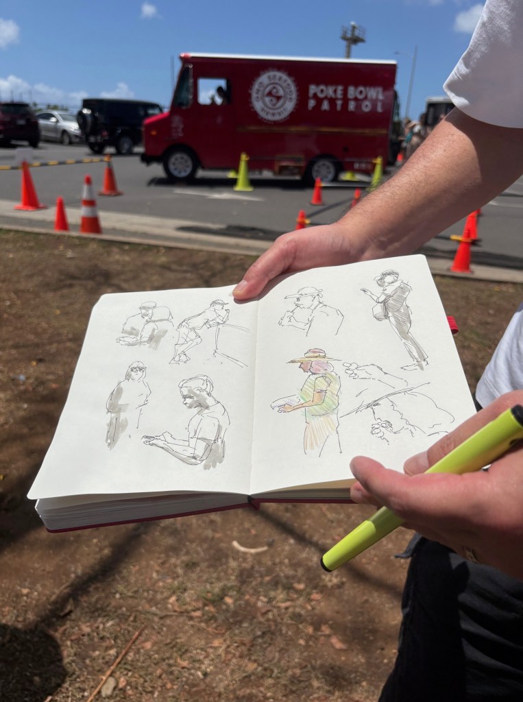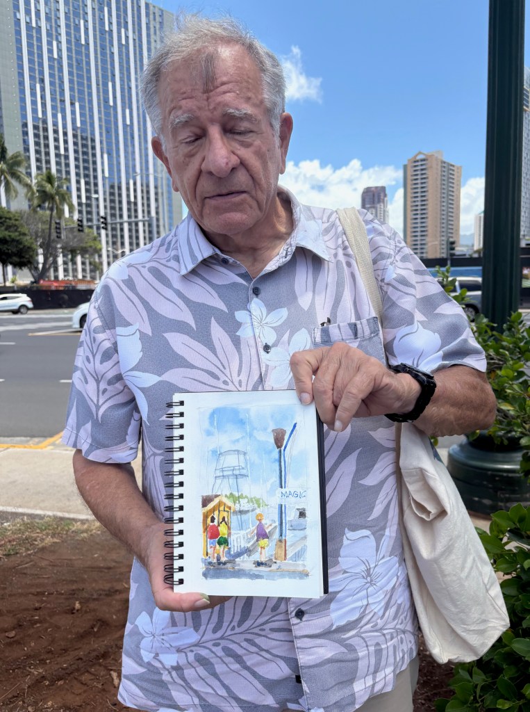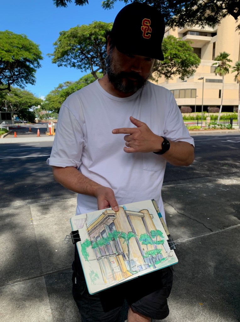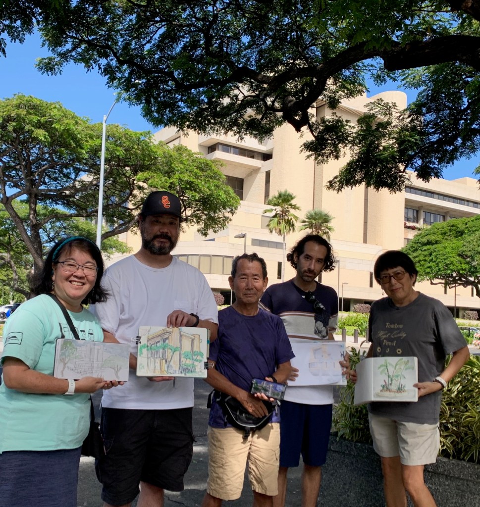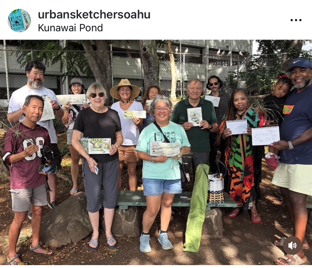 As Urban Sketchers, our mission is to raise the artistic, storytelling of our city by sketching on location, promoting visible art and connecting people. I think we do a pretty good job of capturing a glimpse of Honolulu to share with the world.