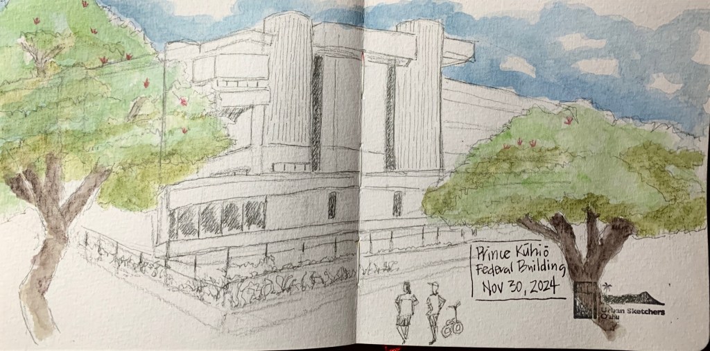 Thank you to everyone who spent part of their Saturday morning sketching on or near the grounds of the Prince Kūhiō Federal Building. You could have been holiday shopping this weekend, but you chose to share your love for sketching and I am most grateful to you.
