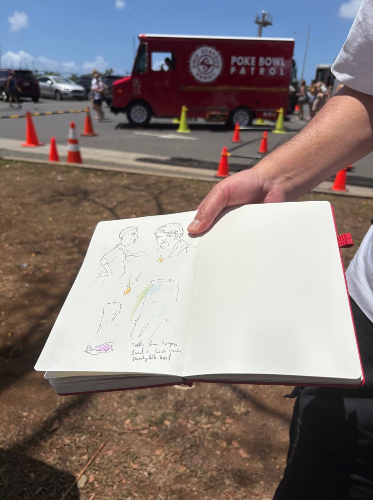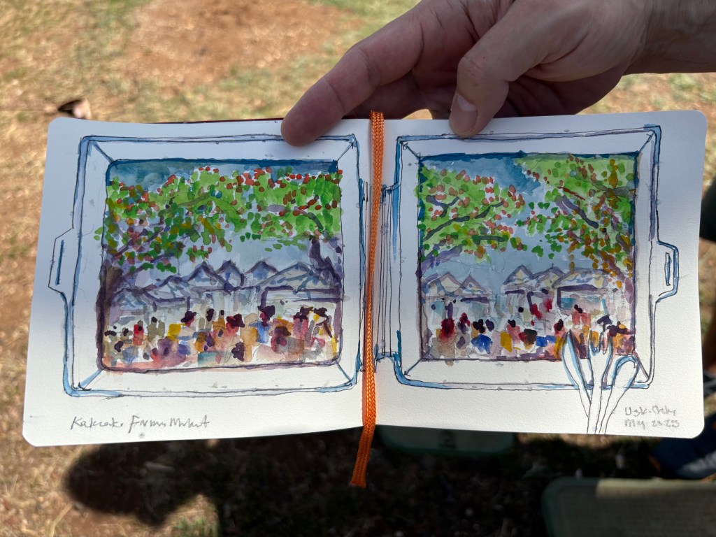 Posted: May 24, 2025 Filed under: USkO | Tags: art, Kaka'ako, Kakaako Farmers Market, oahu urban sketchers, urban sketchers, usk, USkO 1 CommentKaka’ako Farmers Market brings the crowd for good reason. Plenty of local vendors serving up tasty treats, drinks, original crafts and more.