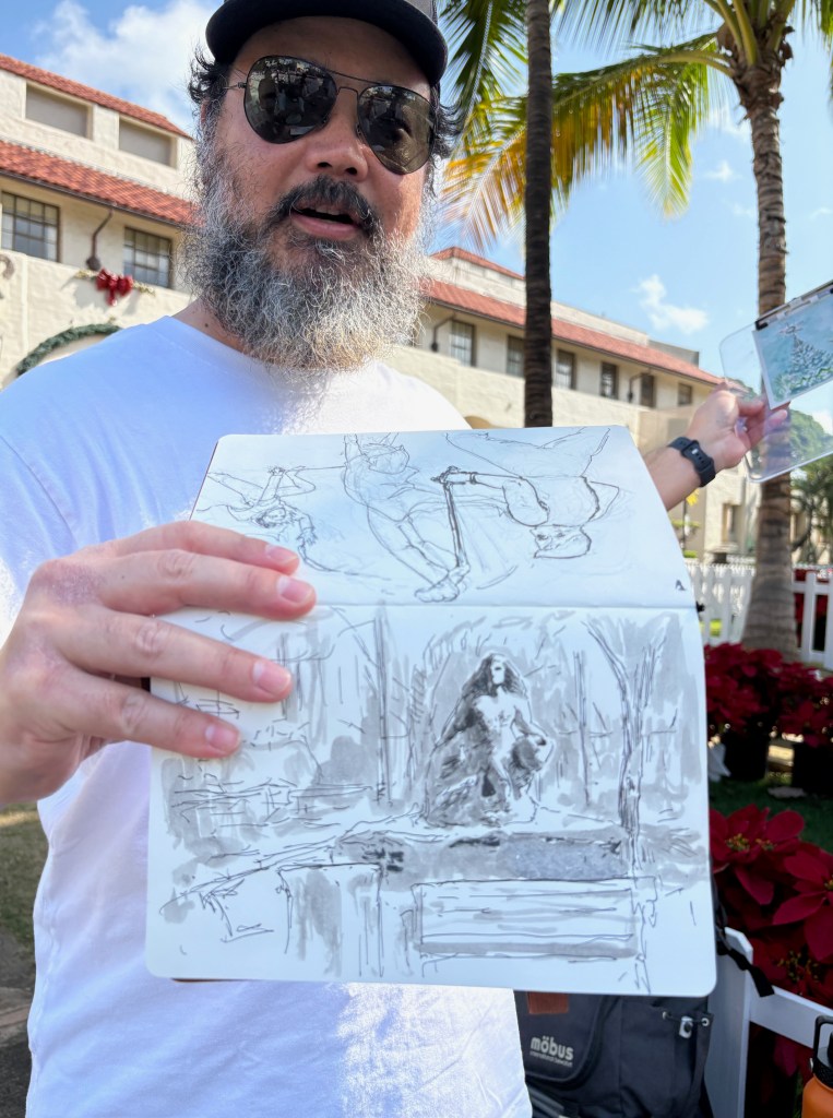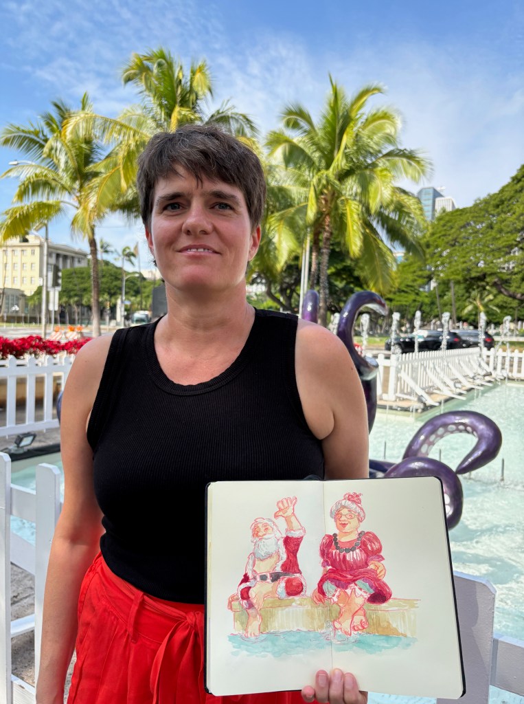 It’s that time again when we gather at Honolulu Hale to sketch the holiday festivities. Whether you choose Shaka Santa and Tutu Mele or inside City Hall, you’ll find a merriment of joyfulness to sketch. Let’s meet: