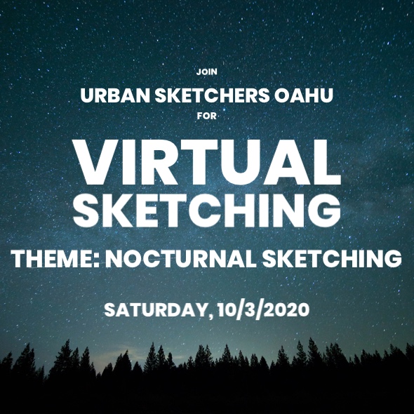 It would be great if we all sketched on the same night, Saturday. But feel free to sketch any night this week and post your nocturnal sketch this weekend on Flickr and Instagram, tagging us @urbansketchersoahu with the #urbansketcheroahu.